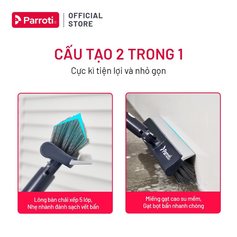 - Thiết kế thông minh 2 trong 1: Có thể vừa chà cọ sàn vừa có thể gạt nước và chất bẩn, giúp sàn nhà luôn khô sạch.