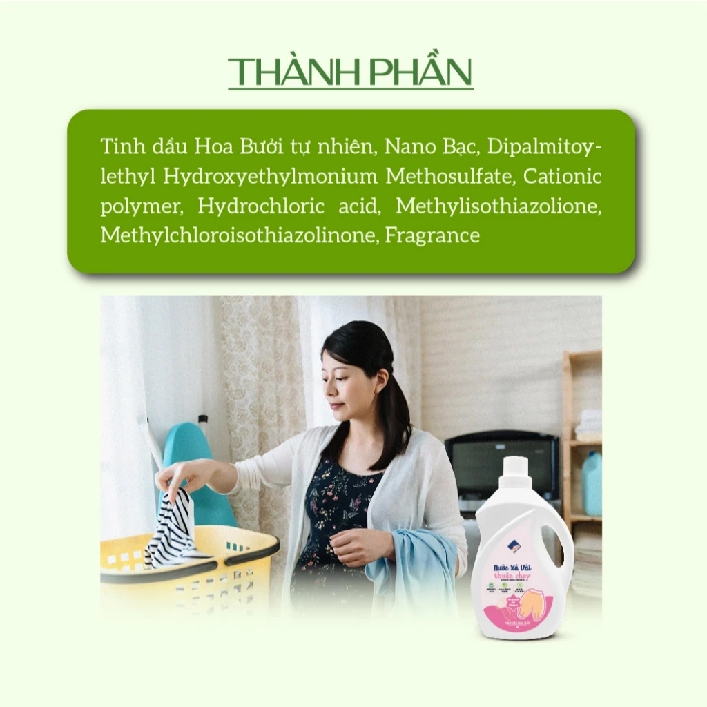 🍀 Thành phần: Tinh dầu Hoa Bưởi tự nhiên 100%, Nano Bạc, Dipalmitoylethyl Hydroxyethylmonium Methosulfate, Cationic polymer, Hydrochloric acid, Methylisothiazolione, Methylchloroisothiazolinone, Fragrance.